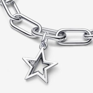 Когда вы носите шарм-медальон Pandora ME «Сверкающая звезда», звёзды всегда будут располагаться на одной линии. Этот шарм-медальон из стерлингового серебра с призматическим профилем украшен сверкающим камнем, вручную установленным в одном из пяти лучей . Обратная сторона украшена микробусинами, рельефной линией и треугольным отверстием в оправе, через которое виден камень. Подарите этот шарм-медальон тому, кто дарит вам звёзды, или носите его как напоминание о том, что вы — звезда своей Вселенной. Совместимо с Pandora ME и Pandora Moments.