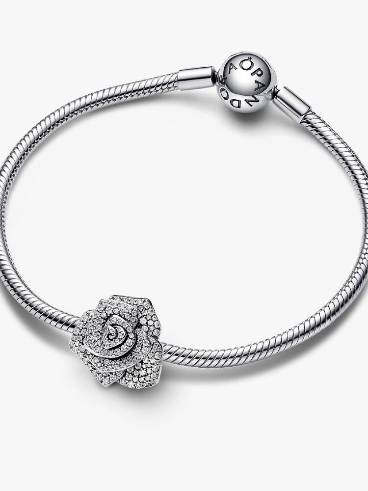 Добавьте блеска с нашим подвеской-шармом «Сверкающая роза в цвету». Это эффектное украшение украшено замысловатым узором в виде большой розы с асимметричными слоями, украшенным 38 микробусинами и 149 бусинами прозрачных кубических циркониев.a для ослепительного эффекта. Этот шарм из стерлингового серебра имеет функциональные отверстия под каждым лепестком, а также два отверстия в форме стебля на задней стороне, через которые можно аккуратно продеть цепочку. Диаметр шарма больше, чем у других шармов, 20 мм, и он идеально дополнит как браслеты, так и ожерелья. Ощутите вечный символ любви с этим изысканным шармом Pandora Rose.